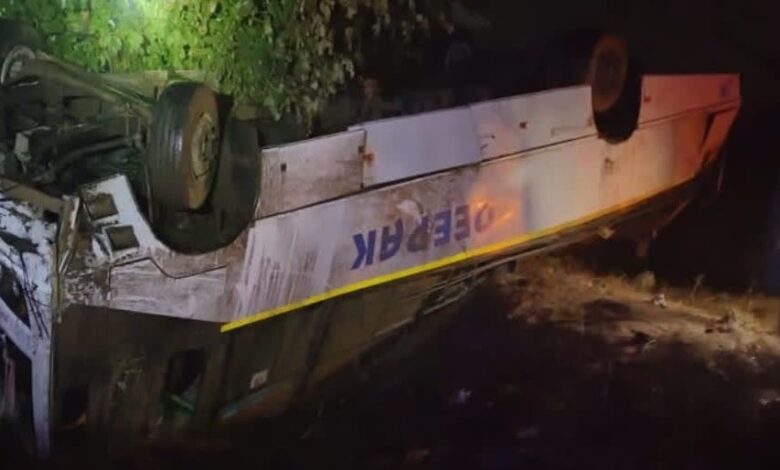 राजस्थान के दौसा में बस पलटने से 15 घायल.