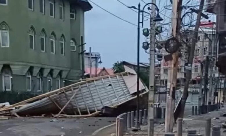 तेज हवाओं के साथ भारी बारिश ने रविवार शाम को कश्मीर के कई हिस्सों में कहर बरपाया, जिससे संपत्ति को नुकसान पहुंचा और विभिन्न क्षेत्रों में बिजली गुल हो गई।