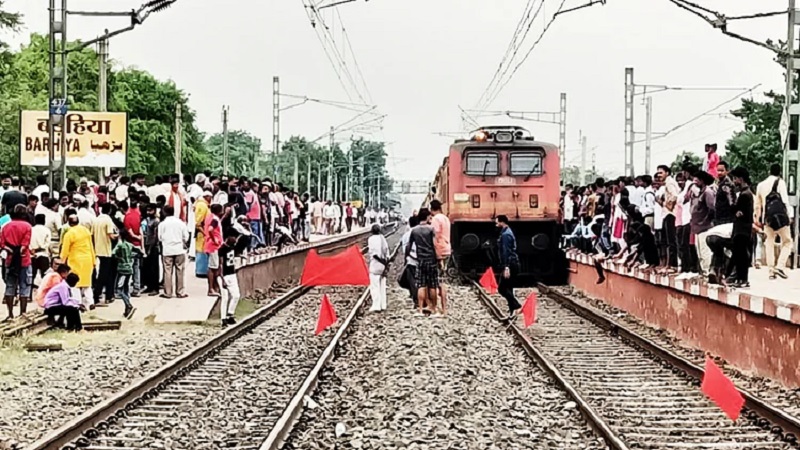 बड़हिया में ट्रेनों का ठहराव को लेकर रेल संघर्ष समिति ने हटिया-पाटलिपुत्र एक्सप्रेस को रोका