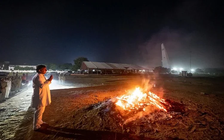 मंगलवार को यूपी के पूर्व मुख्यमंत्री और सपा के पूर्व प्रमुख मुलायम सिंह यादव का इटावा जिले में स्थित पैतृक गांव सैफई में राजकीय अंतिम संस्कार किया गया था. उनके पार्थिव शरीर को सुबह 10 बजे से अंतिम दर्शन के लिए सैफई मेला ग्राउंड के पंडाल में रखा गया था. मुलायम सिंह यादव का सोमवार को निधन हो गया था. 82 साल की उम्र में उन्होंने गुरुग्राम के मेदांता अस्पताल में अंतिम सांस ली थी. वे बीते कई दिनों से बीमार चल रहे थे. उनके पार्थिव शरीर को सोमवार शाम सैफई लाया गया और उनकी ‘कोठी’ में रखा गया था, जहां लाखों लोग ‘नेताजी’ को अंतिम विदाई देने पहुंचे थे. वे अपने समर्थकों और कार्यकर्ताओं के बीच ‘नेताजी’ के नाम से मशहूर थे. उनको अंतिम विदाई और श्रद्धांजलि देने के लिए मेला ग्राउंड में एक मंच बनाया गया था.