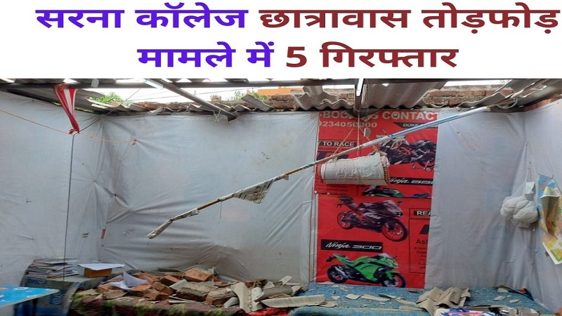 रांची: सुखदेवनगर थाना क्षेत्र के हरमू परम चौड़ा स्थित नवीन सरना कॉलेज छात्रावास में 17 मार्च को छात्रों के साथ मारपीट व तोड़फोड़ मामले में पुलिस ने पांच आरोपियों को गिरफ्तार कर शनिवार को जेल भेज दिया.गिरफ्तार आरोपियों में कांके के टेंडर निवासी निरंजन उरांव (35), शंकर उरांव (40), चान्हो के चटवल निवासी रजनीश कुजूर उरांव (32), हुरहुरी निवासी लक्ष्मण उरांव व सिलागाई निवासी सत्यजीत उरांव (23) शामिल हैं. घटना में शामिल अन्य आरोपियों की तलाश पुलिस कर रही है. सुखदेवनगर थाना प्रभारी ममता कुमारी ने गिरफ्तारी की पुष्टि की है.