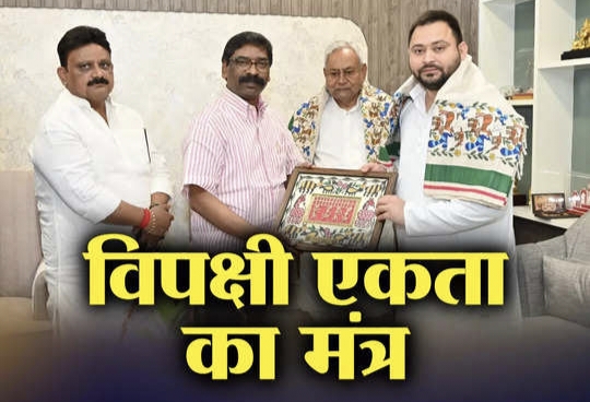 विपक्षी एकता के प्रयास में जुटे बिहार के सीएम नीतीश कुमार ने पड़ोसी सूबे झारखंड के मुख्यमंत्री से भी मुलाकात कर ली। अपना संकल्प और इरादा भी बता दिया कि कुर्सी के लिए वह कोशिश नहीं कर रहे। बीजेपी देश की सत्ता से हटाना उनका मकसद है। हेमंत सोरेन ने न सिर्फ उनका आवभगत किया, बल्कि यह भी सार्वजनिक कर दिया कि नीतीश जी उनके गार्जियन हैं। इसलिए उनके प्रस्ताव के खिलाफ जाने का सवाल ही पैदा नहीं होता। राजनीतिक विश्लेषकों का मानना है कि नीतीश कुमार भले दूसरे प्रदेशों में जेडीयू की जगह बनाने का प्रयास नहीं कर रहे हों, लेकिन झारखंड में वह अपनी पार्टी जेडीयू को पुनर्जीवित करना चाहते हैं।एकता के साथ जेडीयू को पुनर्जीवित करना भी मकसदवाम दलों को छोड़ दें तो झारखंड में विपक्षी एकता तो पहले से ही बनी हुई है। बिहार की तरह झारखंड में भी महागठबंधन की सरकार है। हेमंत सोरेन के नेतृत्व में चल रही सरकार में जेएमएम के साथ कांग्रेस और आरजेडी तो पहले से ही शामिल हैं। एक-दो वामपंथी विधायक हैं भी तो वे सरकार के साथ ही अक्सर ही कदमताल करते दिख जाते हैं। हां, घोषित तौर पर वे सरकार के साथ नहीं हैं। जेडीयू का कोई विधायक ही नहीं है। हालांकि विभाजन के बाद बिहार से अलग बने झारखंड में पहले जेडीयू का खासा जनाधार था। जेडीयू को पुनर्जीवित करने के क्रम में ही नीतीश कुमार ने जेडीयू कोटे से झारखंड के खीरू महतो को राज्यसबा भेजा है। यानी विपक्षी एकता के साथ वे अपनी पार्टी का खोया जनाधार फिर से हासिल करना चाहते हैं। हेमंत सोरेन से नीतीश कुमार की मुलाकात के पहले जेडीयू के बड़े नेता राजीव रंजन उर्फ ललन सिंह और झारखंड के प्रभारी अशोक चौधरी भी हफ्ते भर के अंदर झारखंड का दौरा कर चुके हैं।