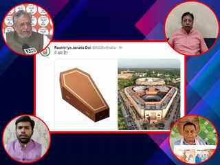 प्रधानमंत्री नरेंद्र मोदी के नए संसद भवन के उद्घाटन के तुरंत बाद लालू यादव की पार्टी राष्ट्रीय जनता दल के ऑफिशियल ट्विटर हैंडल से एक तस्वीर पोस्ट की गई। जिसमें एक तरफ ताबूत और दूसरी तरफ में संसद भवन की तस्वीर लगाई गई है। सवाल किया गया है कि यह क्या है? बीजेपी के पूर्व प्रदेश अध्यक्ष और बेतिया से लोकसभा सांसद संजय जायसवाल ने आरजेडी के इस ट्वीट को शर्मनाक बताते हुए लालू परिवार पर निशाना साधा। उन्होंने कहा कि आरजेडी ने भारत की संसद की तुलना बहुत निचले स्तर पर की है।