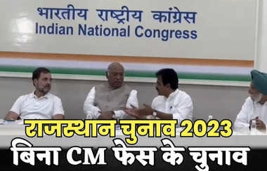 आगामी विधानसभा चुनावों को लेकर दिल्ली में कांग्रेस की बड़ी बैठक हुई। कांग्रेस नेता राहुल गांधी, पार्टी के राष्ट्रीय अध्यक्ष मल्लिकार्जुन खरगे और केसी वेणुगोपाल के नेतृत्व में हुई बैठक में अशोक गहलोत, सचिन पायलट, गोविंद सिंह डोटासरा और प्रभारी सुखजिंदर सिंह रंधावा सहित 30 नेता शामिल हुए। पैरों में चोट लगी होने के कारण गहलोत वर्चुअली रूप से बैठक में जुड़े। 4 घंटे तक चली इस बैठक में सामूहिक के अलावा हर नेता से अलग अलग मीटिंग की गई। राजस्थान में अशोक गहलोत और सचिन पायलट के बीच चल रही खींचतान के चलते सबकी नजर इस बैठक में होने वाले फैसलों पर टिकी रही। बैठक के बाद कांग्रेस के वरिष्ठ नेता केसी वेणुगोपाल और प्रदेश कांग्रेस प्रभारी सुखजिंदर रंधावा ने दावा किया कि पार्टी में कोई गुटबाजी नहीं है। सभी नेता एकजुट हैं और एकजुट रहकर चुनाव लड़ेंगे। सभी का लक्ष्य एक ही है कांग्रेस की सरकार को रिपीट करना। बैठक में सबसे अहम फैसला ये लिया है कि आगामी विधानसभा चुनाव बिना सीएम फेस के होगा।